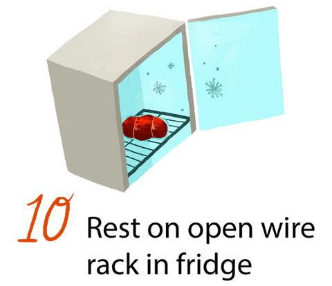 Again, use a wire rack to make sure that air is traveling all around the meat.