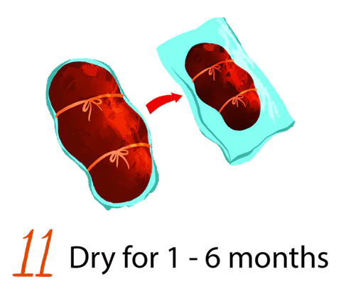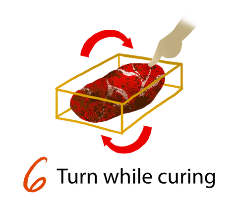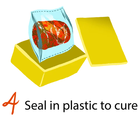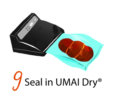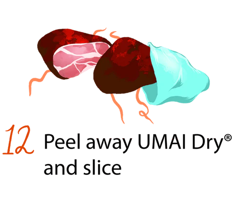 Seal the cured meat into UMAi Dry, and place on an open wire rack in your fridge for about 1-6 months (Yes... good things take time).